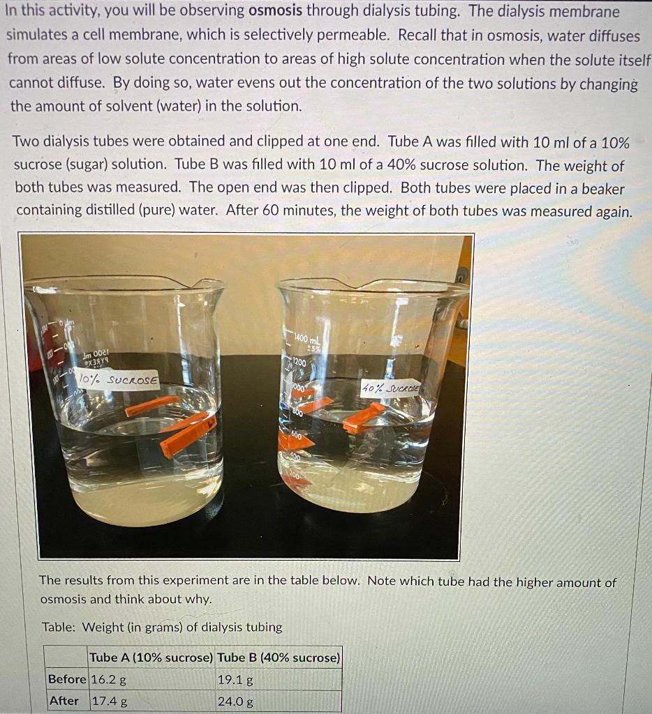 Solved 1 What Happened To The Weight Of Your Dialysis Tubing Chegg Com